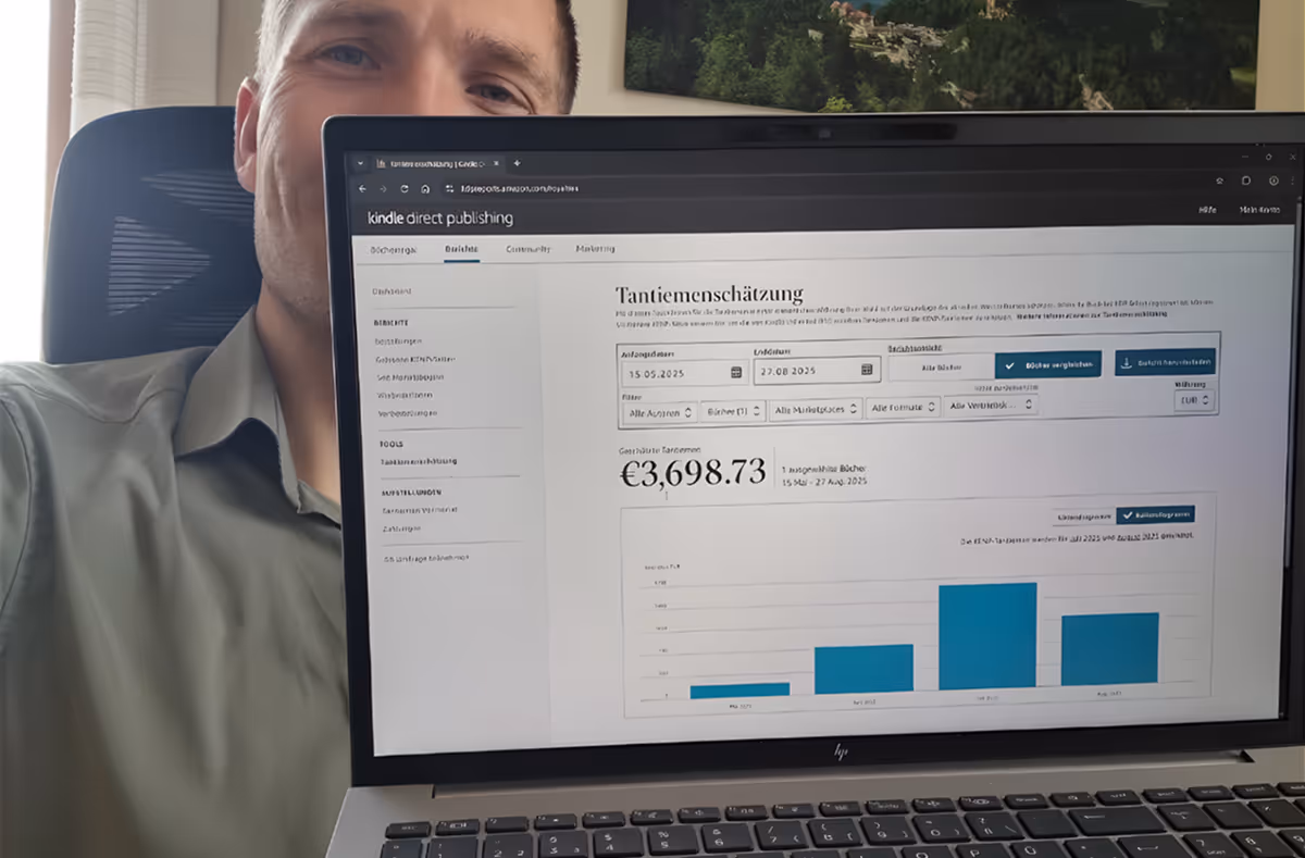 Dank KI-Unterstützung brauchst du weder einen teuren Cover-Illustrator noch teure Ghostwriter – und veröffentlichst in Wochen statt Monaten.